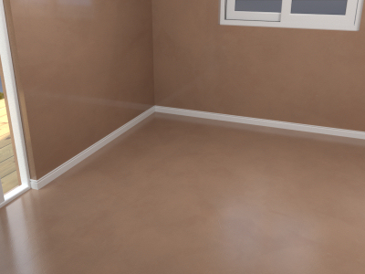 Revêtement de sol continu de microciment, de 3 mm d'épaisseur, réalisé sur surface absorbante. IMPRESSION: à base de résines synthétiques en dispersion aqueuse, diluée en deux parties d'eau. COUCHE DE BASE: microciment monocomposant, couleur blanche, en deux couches, (1 kg/m² chaque couche) et maille en fibre de verre anti-alcalin, de 80 g/m² de masse surfacique. COUCHE DE FINITION: microciment monocomposant, texture lisse, couleur blanche, en deux couches, (0,3 kg/m² chaque couche). COUCHE DE SCELLEMENT: impression scellante respirante et deux couches de scelleur de polyuréthane aliphatique, sans dissolvants, finition brillant.