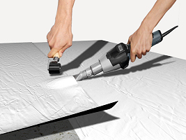 Nettoyage et préparation de la surface. Mise en place du film de polyéthylène. Résolution des points singuliers.