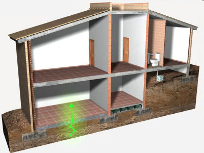 Barrière anti-radon sur un dallage en contact avec le terrain, avec des membranes de polyéthylène