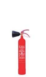 Extincteur portable à neige carbonique CO2, avec 2 kg d'agent extincteur, d'efficacité 34B, avec corps en acier avec finition extérieure avec peinture époxy couleur rouge, vanne à levier, goupille de sécurité et tromblon conique. Comprend le support et les accessoires de montage.