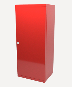 Armoire en tôle d'acier finition avec peinture époxy couleur rouge RAL 3000, avec porte pleine, de 270x640x220 mm, pour extincteur à poudre de 6 à 12 kg, avec les accessoires de montage.