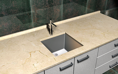 Réalisation d'un bord simple droit à bords légèrement biseautés, de plan de travail en pierre naturelle.