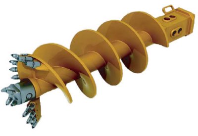 Perforation à l'aide d'un foret widia, dans les roches ou les couches dures du terrain dont la résistance est supérieure à 50 kg/cm², pour la formation de tout type de pieu "in situ" d'entre 35 et 65 cm de diamètre.