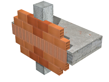 Façade simple paroi, de 14 cm d'épaisseur, en maçonnerie de brique creuse en terre cuite (H-16), à revêtir, 24x19x14 cm, avec joints horizontaux et verticaux de 10 mm d'épaisseur, pose avec du mortier de ciment confectionné sur chantier, avec 250 kg/m³ de ciment, couleur grise, dosage 1:6, fourni en sacs. Linteau en maçonnerie renforcée de briques coupées à revêtir; montage et démontage d'étai. Revêtement des abouts de plancher avec pièces céramiques et des faces extérieures des poteaux avec briques coupées, placées avec le même mortier utilisé dans la pose de la maçonnerie.