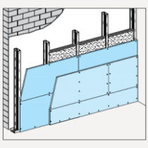 FDP110 Contrecloison en plaques de plâtre, à hautes performances acoustiques. Système "KNAUF"