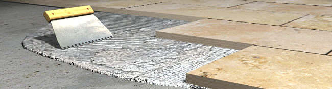 Dallage en pierre naturelle sur une surface plane, pose avec du mortier-colle