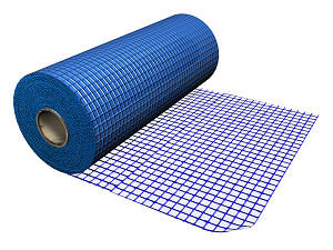 Maille en fibre de verre tissée, avec imprégnation en PVC, de 10x10 mm de vide de maille, anti-alcalin, de 115 à 125 g/m² et 500 µm d'épaisseur, pour armer des enduits traditionnels, enduits de ciment et mortiers.