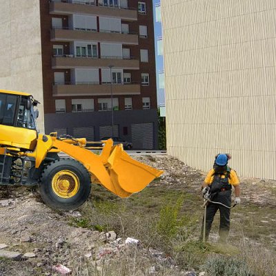 Débroussaillage et nettoyage du terrain contenant des arbustes, avec des moyens mécaniques. Comprend les travaux nécessaires pour retirer des zones prévues pour la construction ou l'urbanisation: arbustes, petites plantes, souches, mauvaises herbes, buissons, bois morts, décombres, déchets et tout autre matériau existant, jusqu'à une épaisseur au moins égale à l'épaisseur de la couche de terre végétale, en considérant comme minimum 25 cm; et chargement dans le camion.